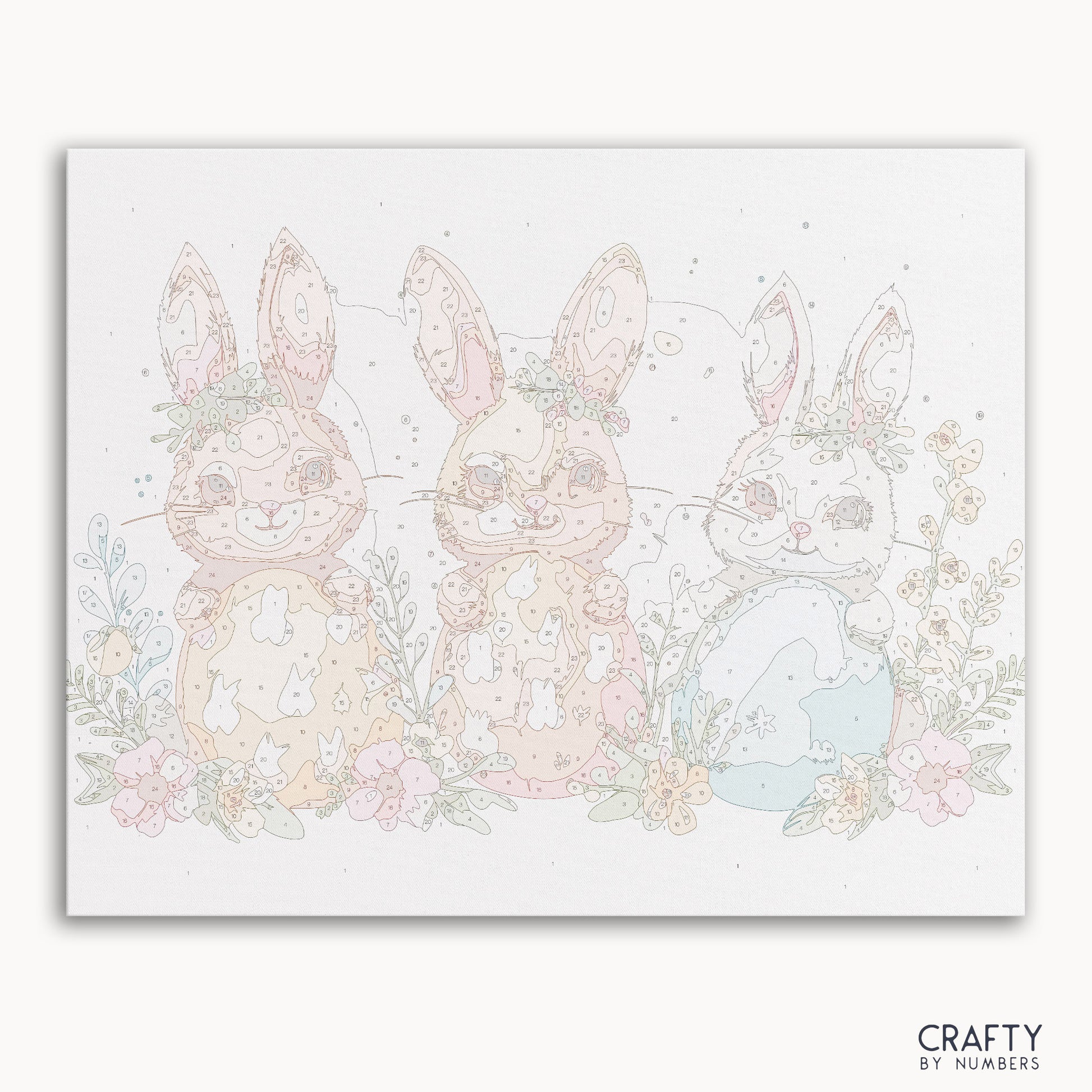 Dive into the festive spirit of spring with 'Easter Egg-trio,' a heartwarming paint by numbers kit from Crafty by Numbers. This set features three adorable bunnies, each cradling an Easter egg as vibrant and unique as their personalities. Surrounded by a spray of spring flowers, these bunnies are a symbol of joy and new beginnings. The kit is designed to delight painters of all skill levels, offering a chance to create a charming triptych of Easter whimsy. With 'Easter Egg-trio,' you'll bring not just art, but a piece of the celebration into your home.