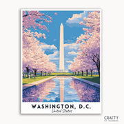 Celebrate the beauty of Washington, D.C., with this Washington, D.C. - Travel Poster paint by numbers kit. Recreate the iconic Washington Monument surrounded by blooming cherry blossoms and its serene reflection in the water. Perfect for artists of all levels, this kit lets you capture the elegance and grandeur of the United States capital in stunning detail.