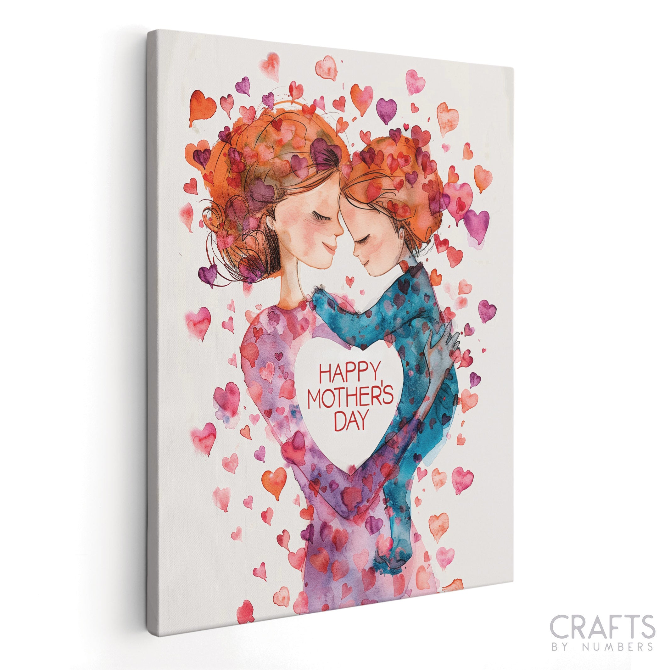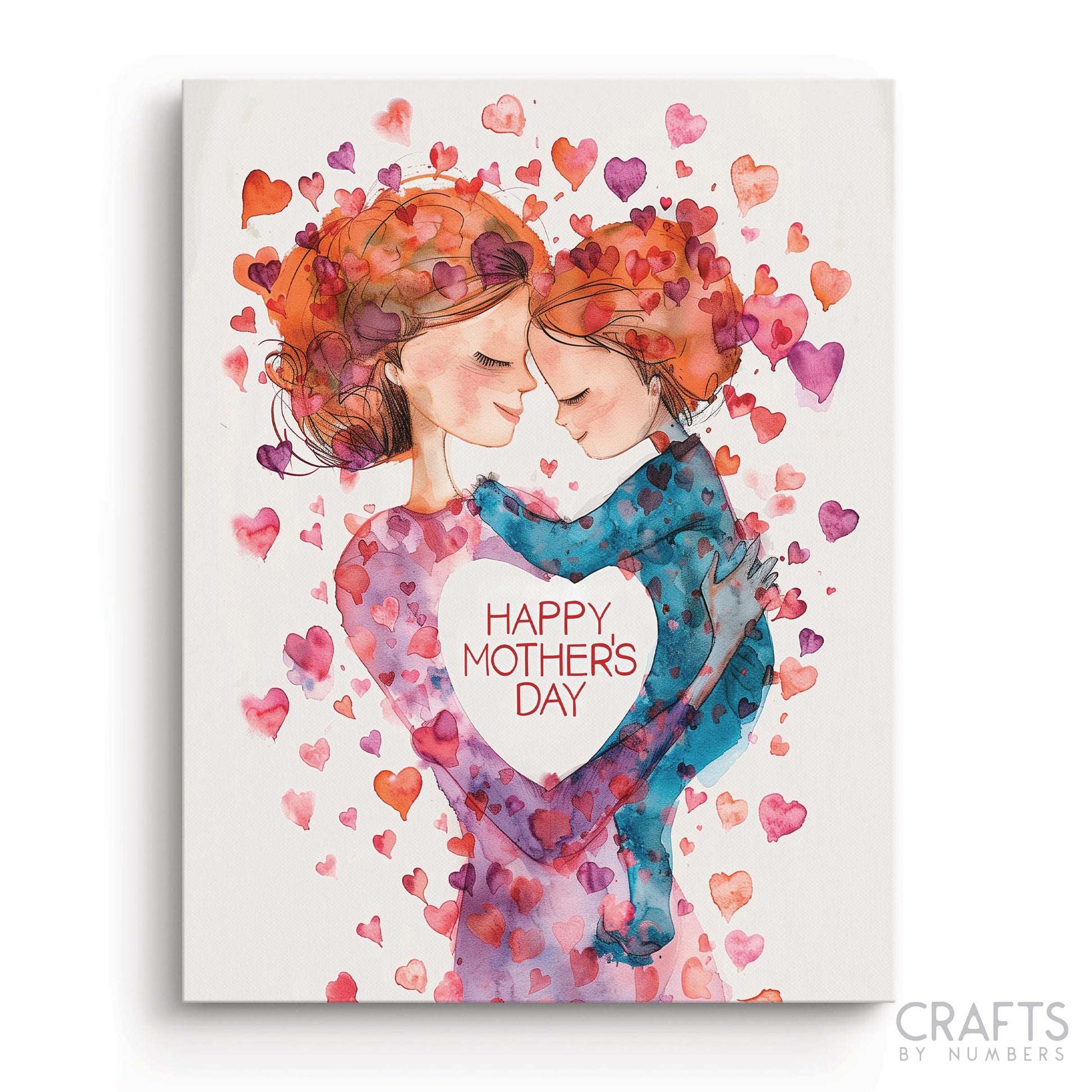 Our "Embrace of Love" paint-by-numbers kit captures the serene joy of a mother's affection cradling her child, set against a backdrop of whimsical hearts that seem to dance around them. This kit allows painters of all skill levels to bring to life the tender connection that defines the purest form of love. It's a perfect gift for Mother's Day, offering not just a moment of artistic creation but also a lasting symbol of the bond shared with a mother.