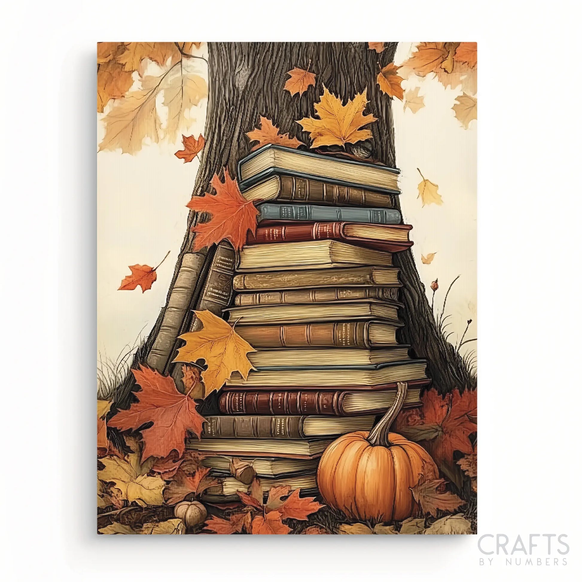 Cozy up with the charm of the season through "Pumpkins and Pages", part of Crafty by Numbers' Spooky Fall collection. This warm and inviting paint-by-numbers design features a stack of vintage books resting against a tree, surrounded by falling autumn leaves and a festive pumpkin. Perfect for lovers of both books and the fall season, "Pumpkins and Pages" offers a relaxing and creative escape into a world of stories and seasonal beauty. Whether you’re an experienced artist or just beginning, this piece will bring the cozy, nostalgic essence of autumn into your home.