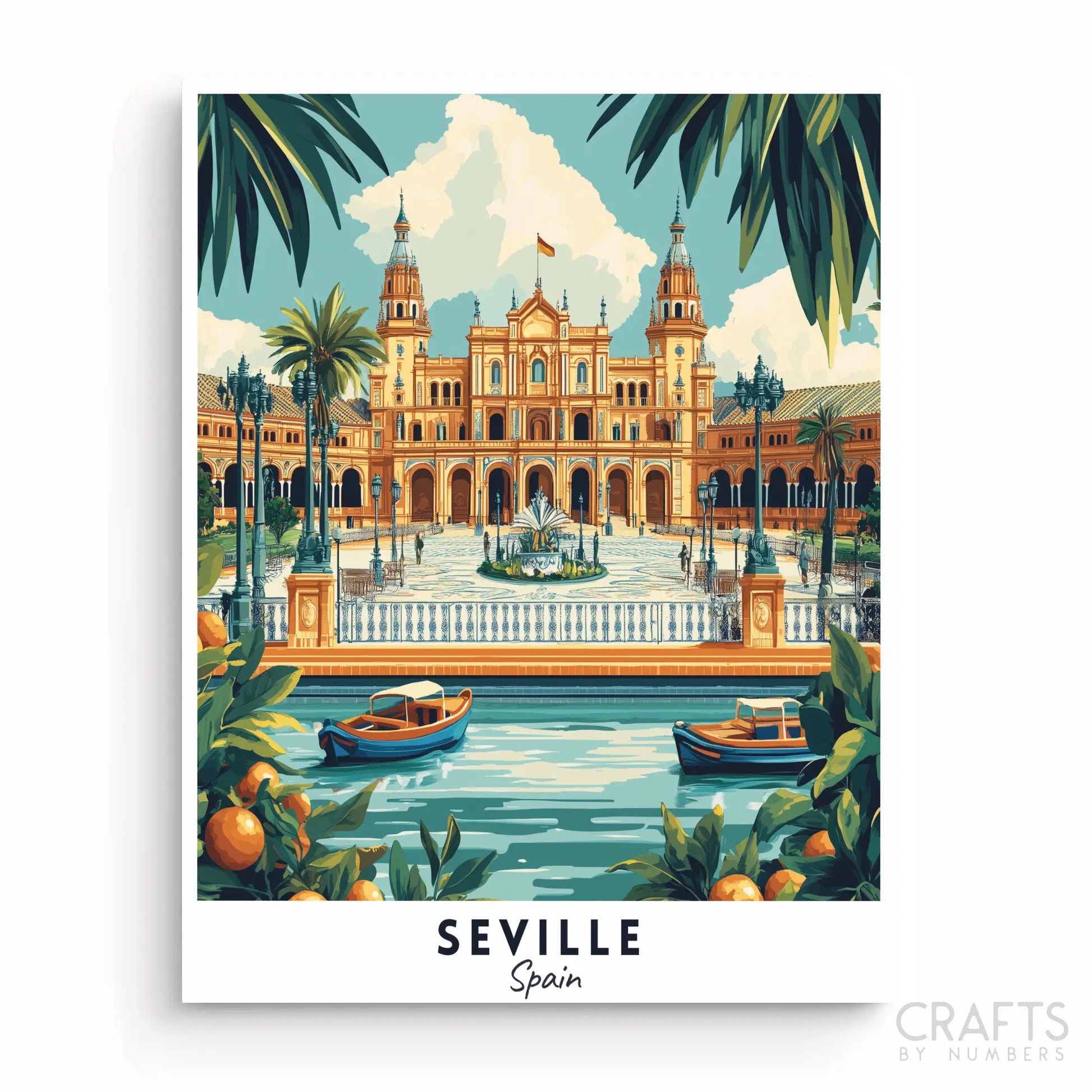 Transport yourself to the vibrant charm of southern Spain with the number canvas of Seville - Travel Poster paint by numbers kit. Capture the grandeur of Plaza de España, surrounded by lush orange trees and sparkling waters. A masterpiece that brings the beauty of Seville's rich history and stunning architecture into your home.