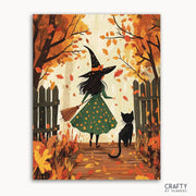 Take a magical journey through autumn with "Spooky Stroll", part of Crafty by Numbers' Spooky Fall collection. This whimsical paint-by-numbers design features a charming witch and her black cat walking through a beautifully vibrant autumn landscape, surrounded by falling leaves and warm fall hues. Perfect for lovers of both Halloween and the season’s magic, "Spooky Stroll" offers a relaxing and delightful creative experience. Whether you're a seasoned painter or just beginning, this piece is a wonderful way to capture the enchanting essence of fall.