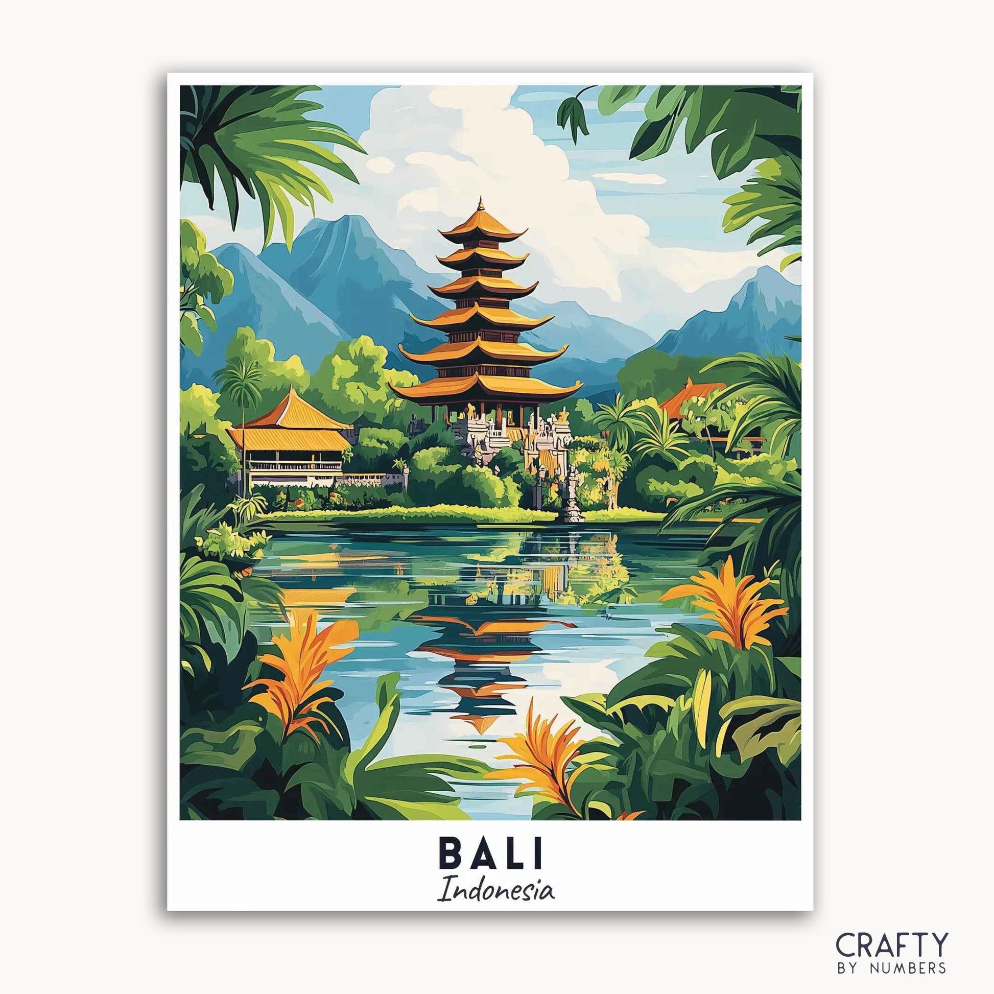 Immerse yourself in the tranquility of Bali with this breathtaking paint by numbers kit. Paint the stunning Ulun Danu Beratan Temple, nestled among lush mountains and reflected in calm waters, surrounded by vibrant tropical flora. With high-quality materials and easy-to-follow numbered sections, this kit offers a relaxing and rewarding artistic journey. A must-have unique gifts for lovers of travel, nature, and creativity!