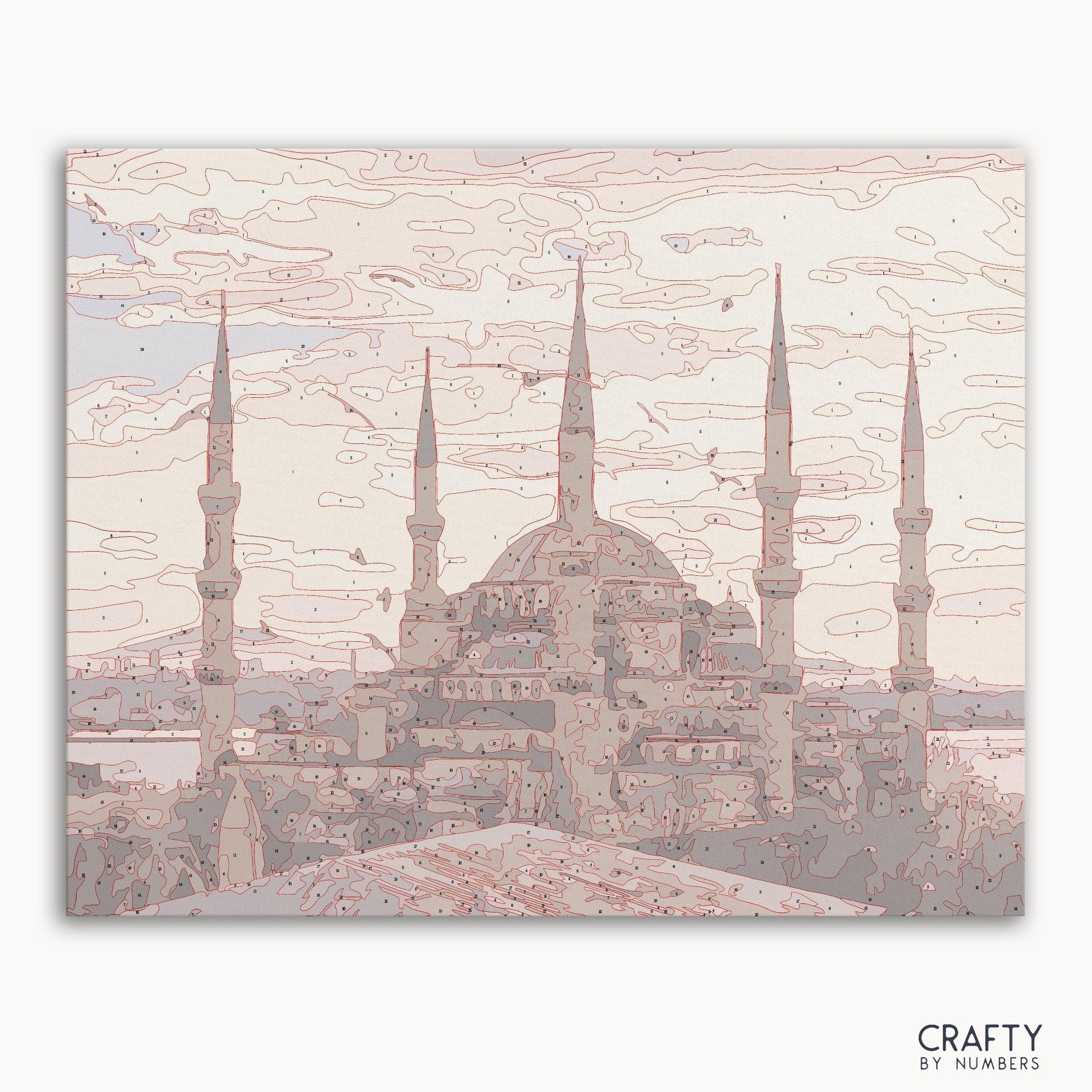 Bring a sense of peace and devotion into your home with this Royal Mosque paint by numbers kit. The graceful arches, tall domes, and calm blue tones create a scene that feels balanced and uplifting. Every detail is designed to help you slow down and enjoy a quiet creative moment. The clear layout makes painting easy, even if you are new to paint by numbers.