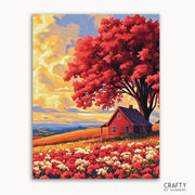 Bask in the glow of Golden Hour Cottage, a captivating paint-by-numbers kit that brings to life a cozy cabin under a fiery autumn tree. With rolling golden fields, a breathtaking sunset, and a peaceful atmosphere, this kit offers a perfect escape for artists of all levels. Create your own masterpiece and savor the warmth of fall forever.