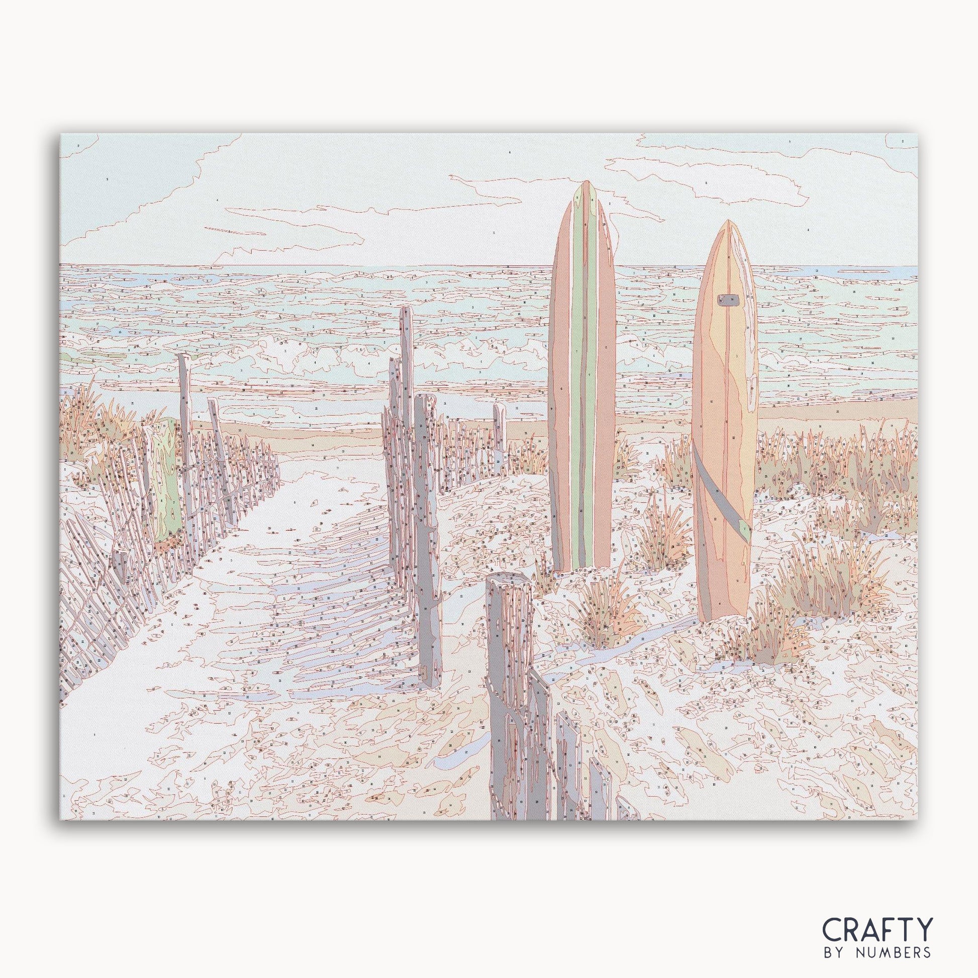 Surfboards Beach Paint by numbers kit is easy, relaxing and perfect for beginners. Crafts by Numbers handpicked this design to ensure your painting experience is top-notch. Buy now this Surfboards Beach design!
