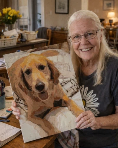 Discovering something personal without going too far is the challenge that many people encounter. 76% of buyers stated in a recent poll that they preferred presents that "felt more meaningful." Using our custom paint by numbers from the photo kit, one user created a painting out of a pet photo and shared how it became a constant reminder of their passed away dog.
