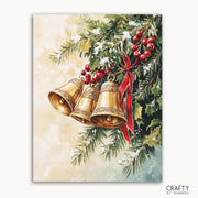 Ring in the holiday season with Golden Jingle Bells. This exquisite paint by numbers kit showcases a trio of ornate golden bells nestled among lush greenery, vibrant holly, and bright red berries, tied together with a festive red ribbon. The classic Christmas charm of this piece makes it a perfect addition to your seasonal decor or a thoughtful gift for loved ones. Capture the magic and warmth of the holidays, one brushstroke at a time, and let the beautiful tones of gold, green, and red fill your home with festive spirit.