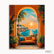 Let your brush drift into Sunset on the Amalfi, where warm light spills across the sea, a sailboat glides toward the horizon, and a terracotta terrace invites you to pause. A relaxing escape in every stroke.
