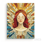 Let your inner calm and hope shine through with the Angel of Light paint by numbers kit. This artwork features a glowing angel designed in a stained-glass style, with soft golden rays spreading outward and peaceful wings gently framing the figure. Every line and color is created to reflect grace, protection, and quiet strength. The warm tones and gentle contrasts make the scene feel comforting and uplifting from the very first brushstroke.
