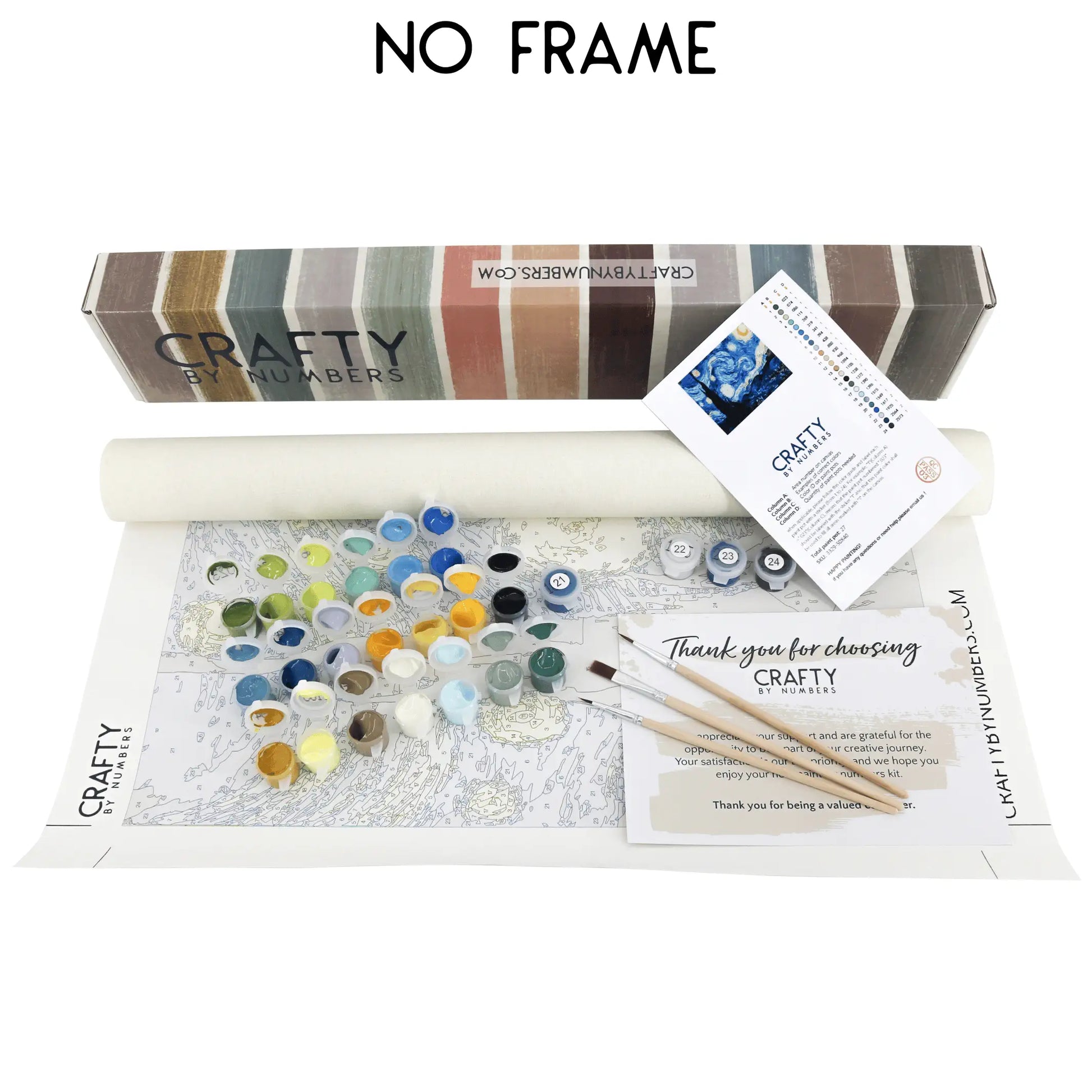 "Stellar Whisper: Dusk to Dawn Series" by Crafty By Numbers is an enchanting paint by numbers kit that captures the ethereal moment when the last light of day meets the first light of night on a 40x50cm canvas. As you guide your brush across the canvas, a mesmerizing field of golden flowers emerges, set against a backdrop of a star-swirled sky. This kit invites you to create a world where twilight whispers and the cosmos dances in harmony, offering a tranquil painting experience for all who are drawn to the mystery of the stars.