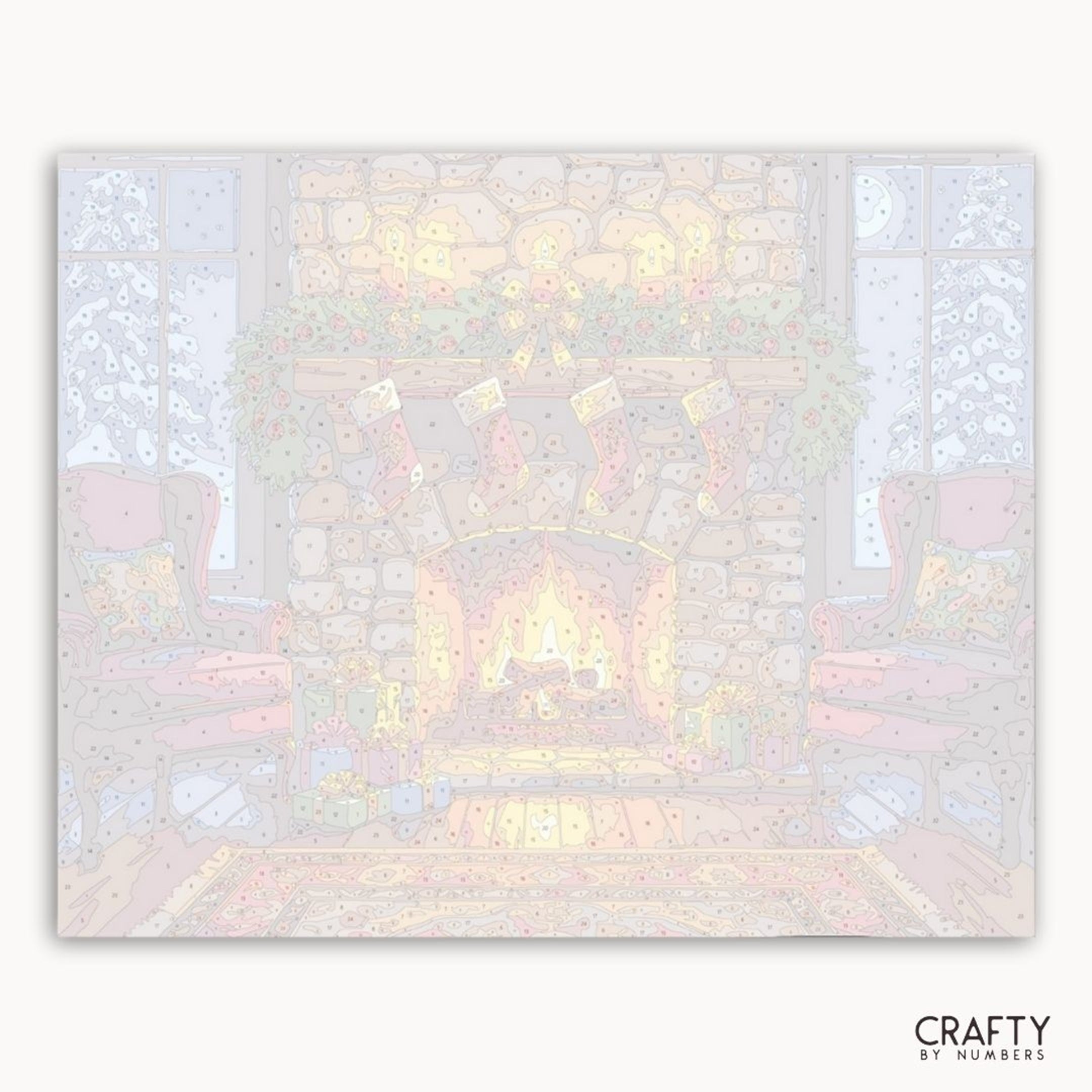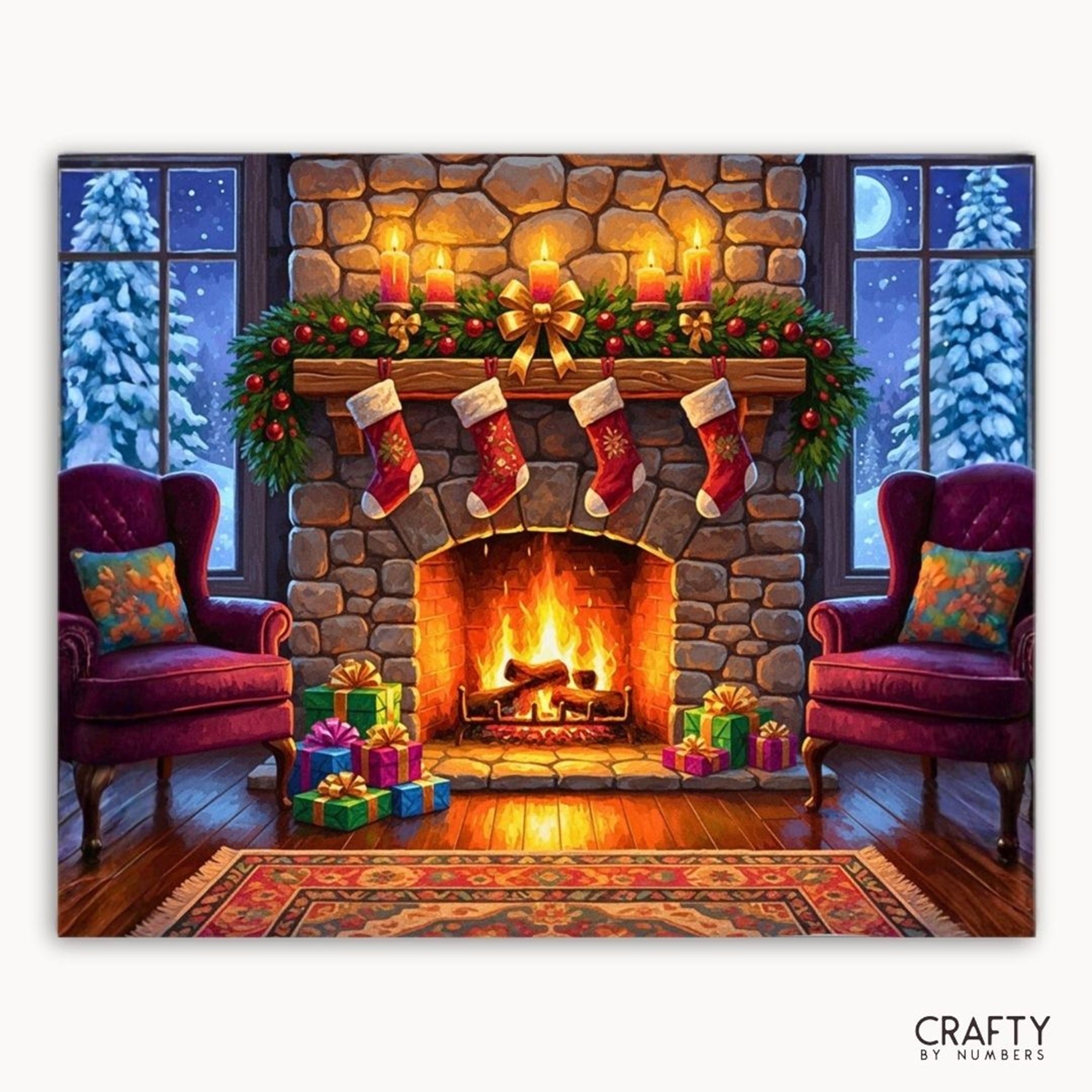 Wrap yourself in festive comfort with The Night Before Cheer, a heartwarming paint by numbers kit featuring a glowing stone fireplace, twinkling candles, hanging stockings, and colorful gifts. With snowy trees just outside the window, this peaceful scene captures the essence of a perfect Christmas Eve.