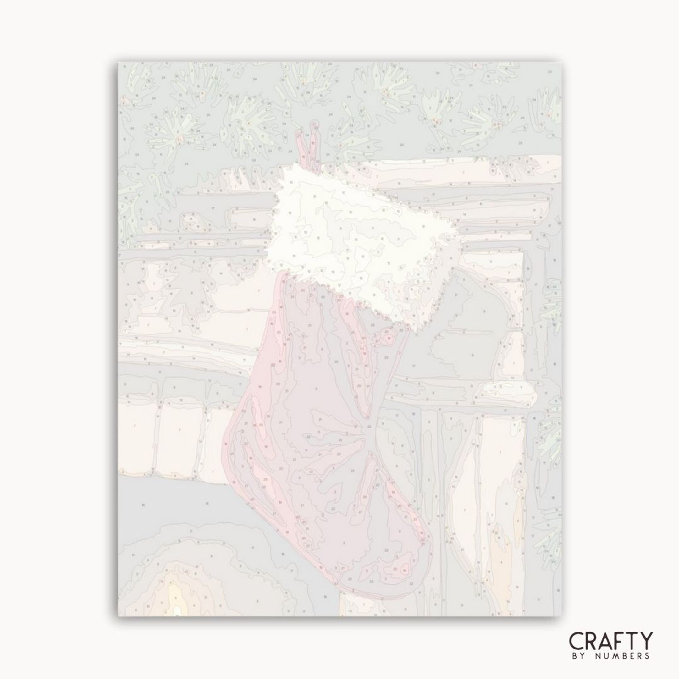 The Christmas Hearth brings the warmth of the holidays home with a single, iconic image: a velvet red stocking, trimmed with soft fur, hung carefully above a glowing fire. Pine garland adds festive charm, completing this timeless paint by numbers design that captures the anticipation, comfort, and tradition of Christmas Eve.