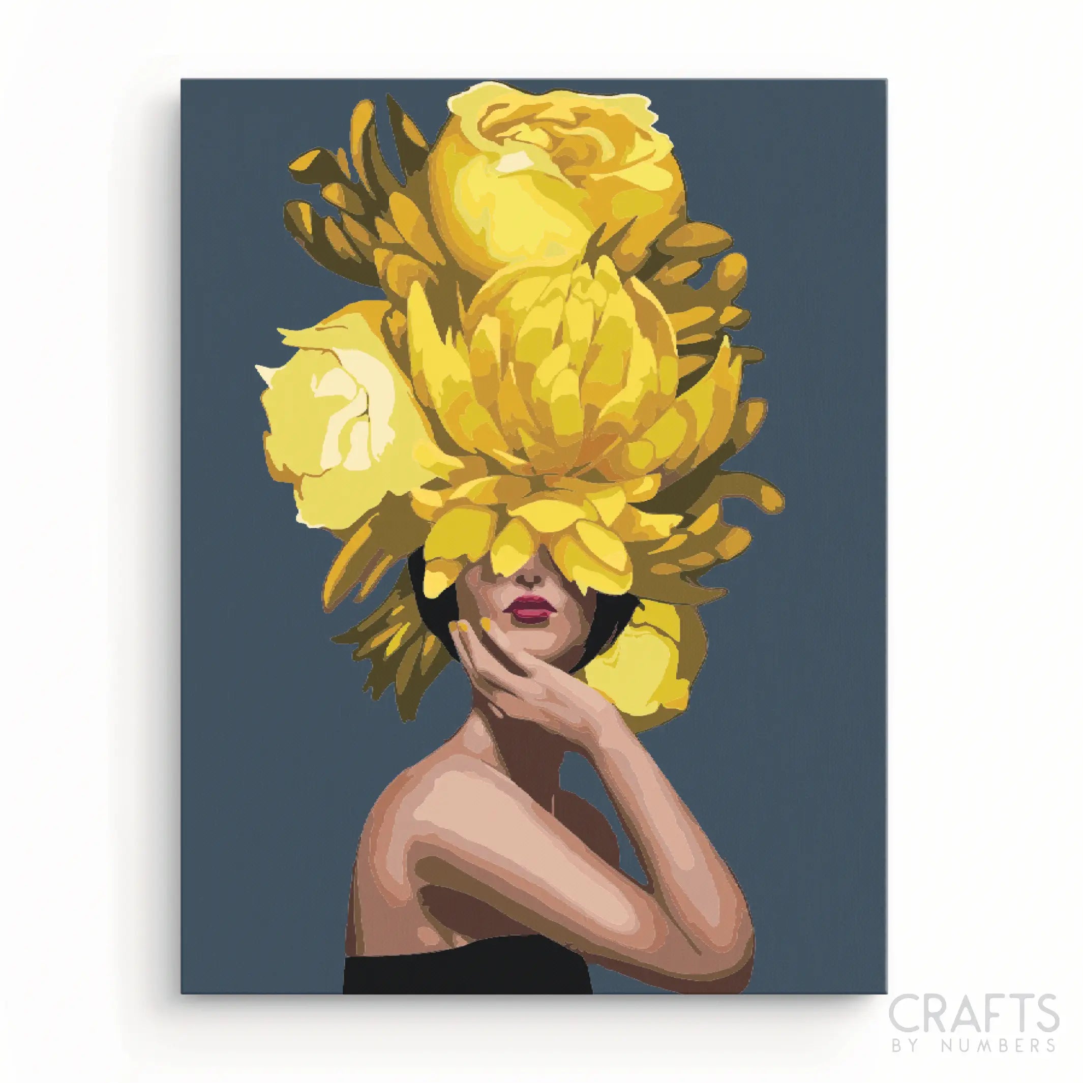 Immerse yourself in the opulence of Golden Enigma, a captivating addition to the Crafty by Numbers collection. This paint by numbers kit transports you into a world where art meets mystery, featuring a stunning portrayal of a woman shrouded in a cascade of golden petals. Each kit comes with a finely detailed canvas, a palette of rich, golden-hued paints, and a set of precision brushes to help you recreate this enigmatic beauty. Whether you're a seasoned painter or a curious beginner, Golden Enigma promises an artistic journey filled with intrigue and the lustrous allure of florals. Embrace the splendor of golden blooms and the grace of hidden glances as you craft your masterpiece.