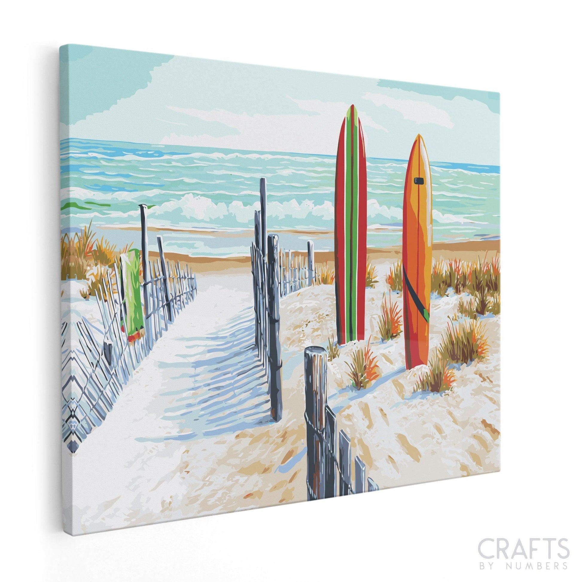 Surfboards Beach Paint by numbers kit is easy, relaxing and perfect for beginners. Crafts by Numbers handpicked this design to ensure your painting experience is top-notch. Buy now this Surfboards Beach design!